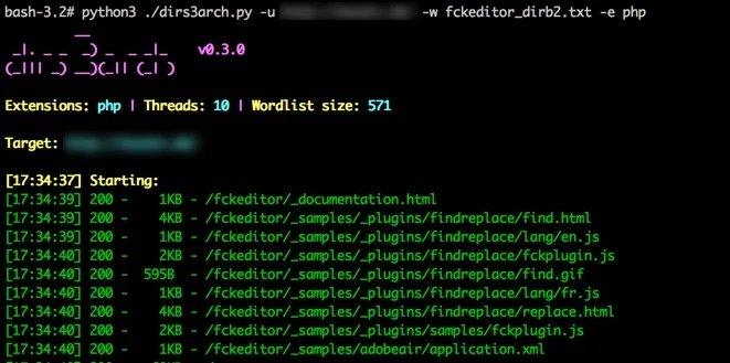 Once done use the output file with your favorite directory brute forcing tool. I like dirs3arch, so for that tool it would look like this: