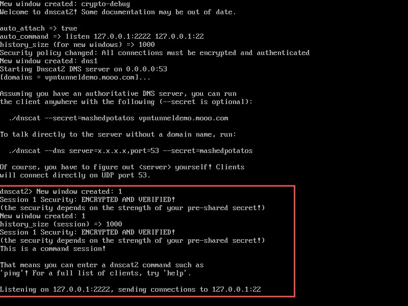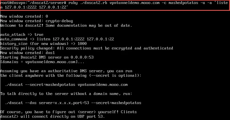 - The -u switch tells the server to automatically attach to each inbound dnscat client session.